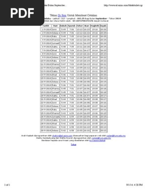 Waktu Solat Bagi Kawasan Bandar Melaka Bulan September Tahun 2014 Pdf